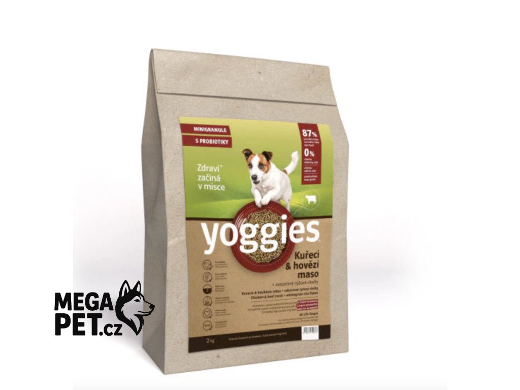2 kg Yoggies Kuřecí & hovězí maso, MINIgranule lisované za studena s probiotiky