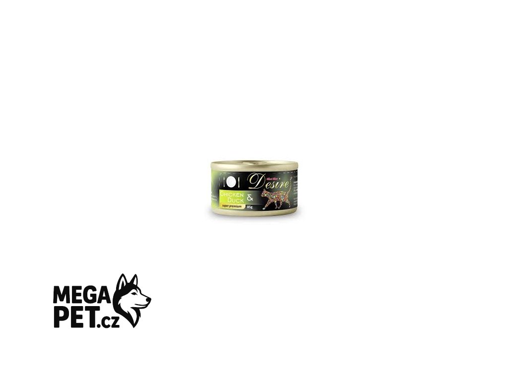 Složení: kuřecí maso (51 %), kachna (5 %), rýže (1,5 %), rostlinný želírující prostředek schválený EU, vitamíny a minerály.