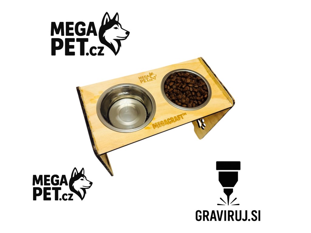 Tento dřevěný stojan s nerezovými miskami MEGACRAFT™ kombinuje funkčnost, moderní design a ruční českou výrobu. Vyvýšené misky pomáhají zdravému držení těla, snadno se čistí a stojan je možné personalizovat gravírováním jména. ❤️