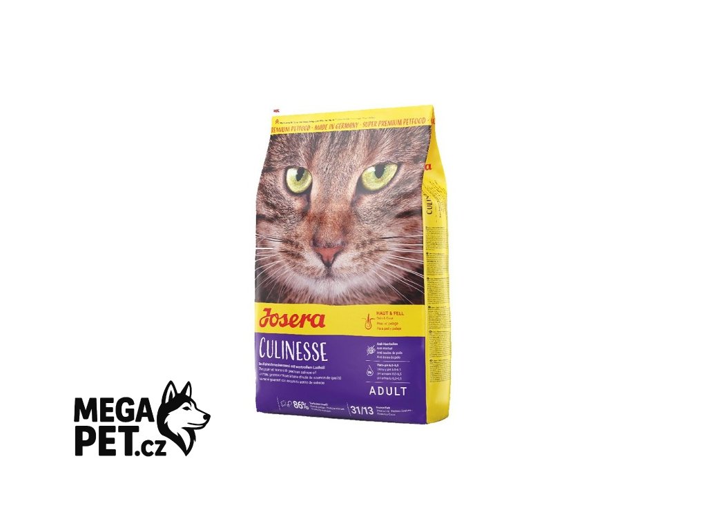 Je Vaše kočka trochu labužník? Josera Culinesse krmivo pro kočky s obsahem jemného kuřecího masa a kvalitního lososa je přesně tím pravým pro náročné kočky. Díky vyvážené receptuře je krmivo Josera Culinesse lehce stavitelné a velmi chutné. Kompletní krmivo Josera Culinesse je přizpůsobeno potřebám dospělých koček. Díky použití nejkvalitnějších surovin, cenných antioxidantů a díky šetrné výrobě je krmivo lehce stravitelné a chutná i největšímu kočičímu labužníkovi.
