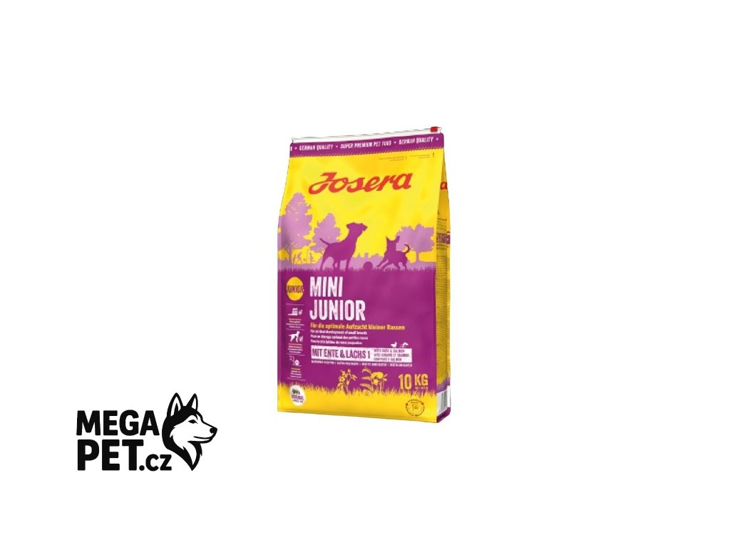 Lahodné malé granule se spoustou chutí a síly pro období růstu. Složení krmiva Josera Mini Junior odpovídá specifickým nutričním potřebám štěňat malých plemen od 3. týdne věku. Obsahuje velké množství chutných živočišných bílkovin z kachního masa a lososa. To přispívá k vývoji silného a štíhlého svalstva. Cenné mastné kyseliny pozitivně ovlivňují vývoj mozku. Toto super prémiové, německé krmivo je bezlepkové a je proto vhodné i pro malé citlivé pejsky. Prvotřídní suroviny a prebiotický inulin z čekanky harmonizují trávení a zlepšují vstřebávání cenných živin a kompaktnost stolice. Malé granule usnadňují žvýkání a zlepšují příjem krmiva. Speciální receptura zlepšuje zásobování vápníkem a přispívá tak k prevenci vzniku zubního kamene. Taurin a L- karnitin přispívají k dobré srdeční činnosti. Krmivo obsahuje všechny cenné vitamíny, minerální látky a stopové prvky, které malí pejsci pro zdravý start do života potřebují.