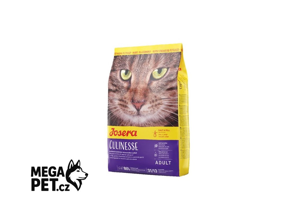 Je Vaše kočka trochu labužník? Josera Culinesse krmivo pro kočky s obsahem jemného kuřecího masa a kvalitního lososa je přesně tím pravým pro náročné kočky. Díky vyvážené receptuře je krmivo Josera Culinesse lehce stavitelné a velmi chutné. Kompletní krmivo Josera Culinesse je přizpůsobeno potřebám dospělých koček. Díky použití nejkvalitnějších surovin, cenných antioxidantů a díky šetrné výrobě je krmivo lehce stravitelné a chutná i největšímu kočičímu labužníkovi.