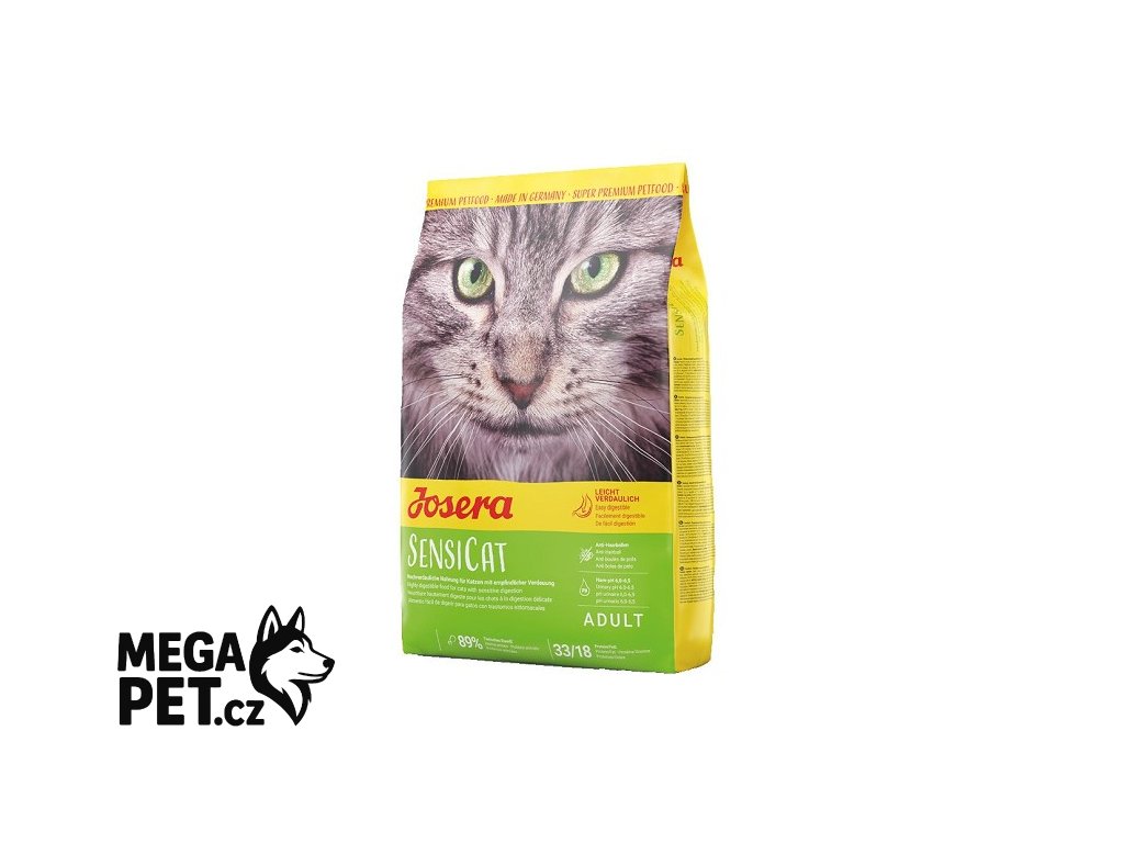 - trávení: díky surovinám v prémiové kvalitě a šetrnému zpracování surovin zaručuje Josera SensiCat vysokou stravitelnost a nabízí tak optimální krmivo kočkám s citlivým trávením.