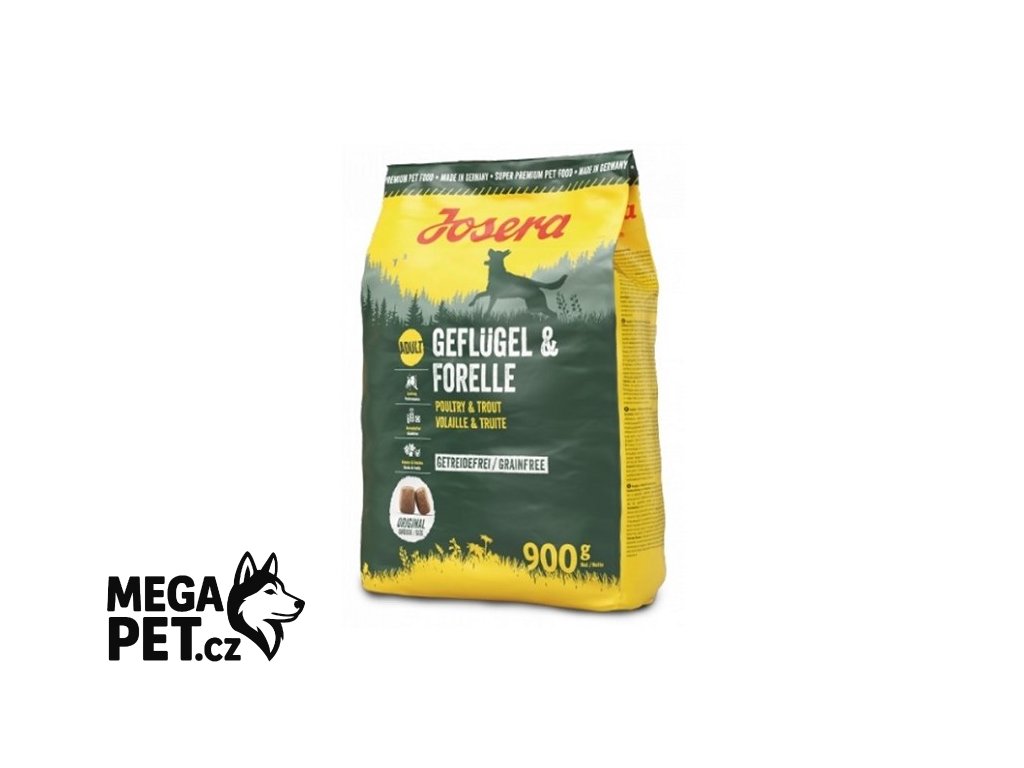 Složení: sušený drůbeží protein 26%, sladké brambory (batáty), hrachová moučka, drůbeží tuk, bramborový protein, sušený pstruh 6%, řepné řízky, hydrolyzovaný drůbeží protein, kvasnice, jablečná vláknina, sušený svatojánský chléb, minerální látky, byliny, ovoce, prášek z cikorky (přírodní zdroj inulinu), sušené maso z novozélandských zelených mušlí.