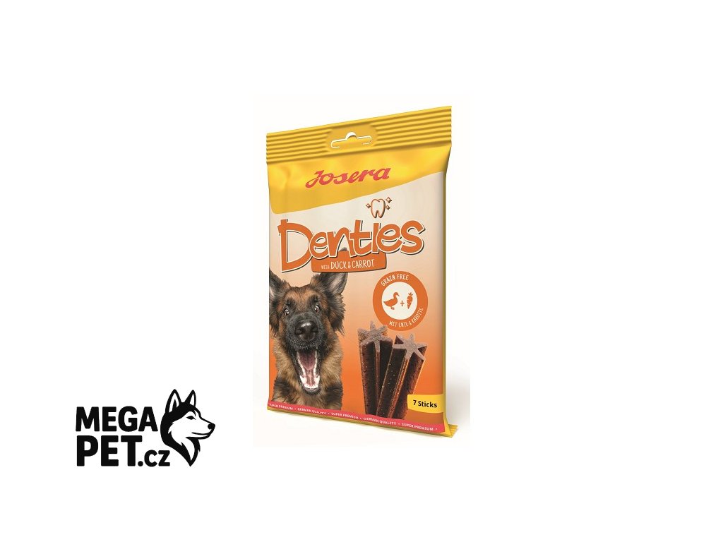 Lahodné žvýkací tyčinky od Josery pro psy s příchutí kachny a mrkve, které pomáhají čistit zuby. Díky celulóze poskytují Josera Denties Duck & Carrot hravou péči o zuby - jejich struktura totiž dokáže podpořit každodenní čištění zubů. Pamlsek s hvězdicovou strukturou poskytuje zábavu při žvýkání a masíruje dásně. Celulóza může díky své struktuře podporovat čištění zubů.