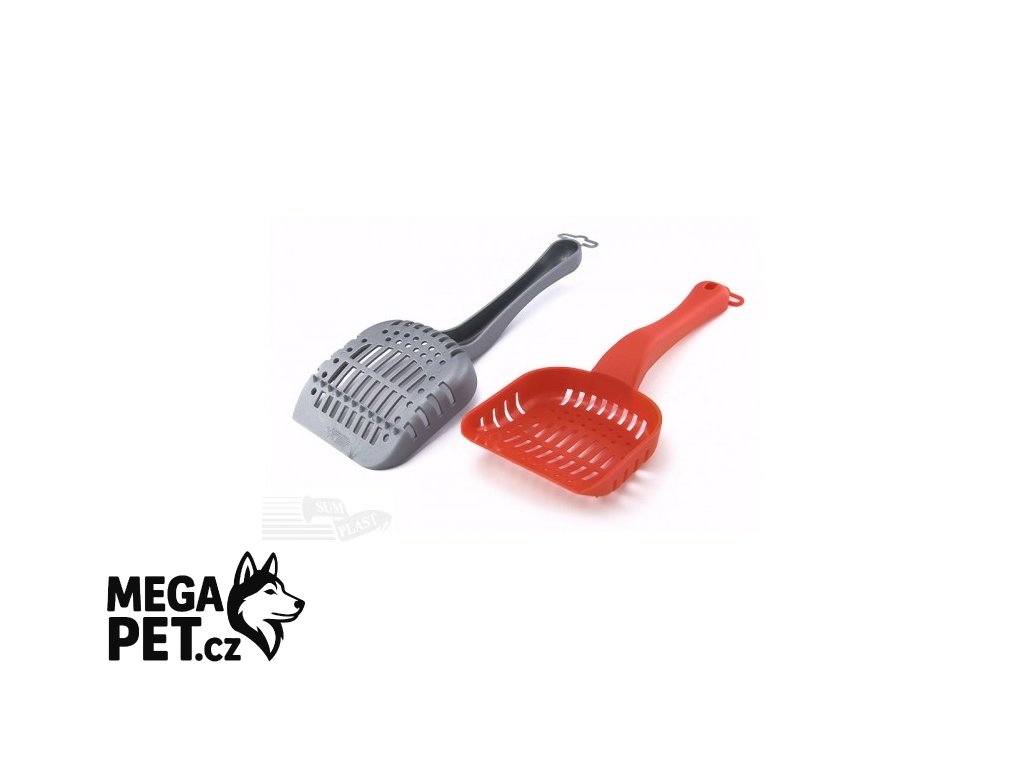 Plastová lopatka na trus vhodná pro hrudkující steliva. Lopatka na stelivo slouží k odebrání kočičích exkrementů z nádoby se stelivem. Pomocí lopatky naberete exkrement i s trochou steliva a to přez lopatku procedíte zpět do nádoby, čímž šetříte stelivo.