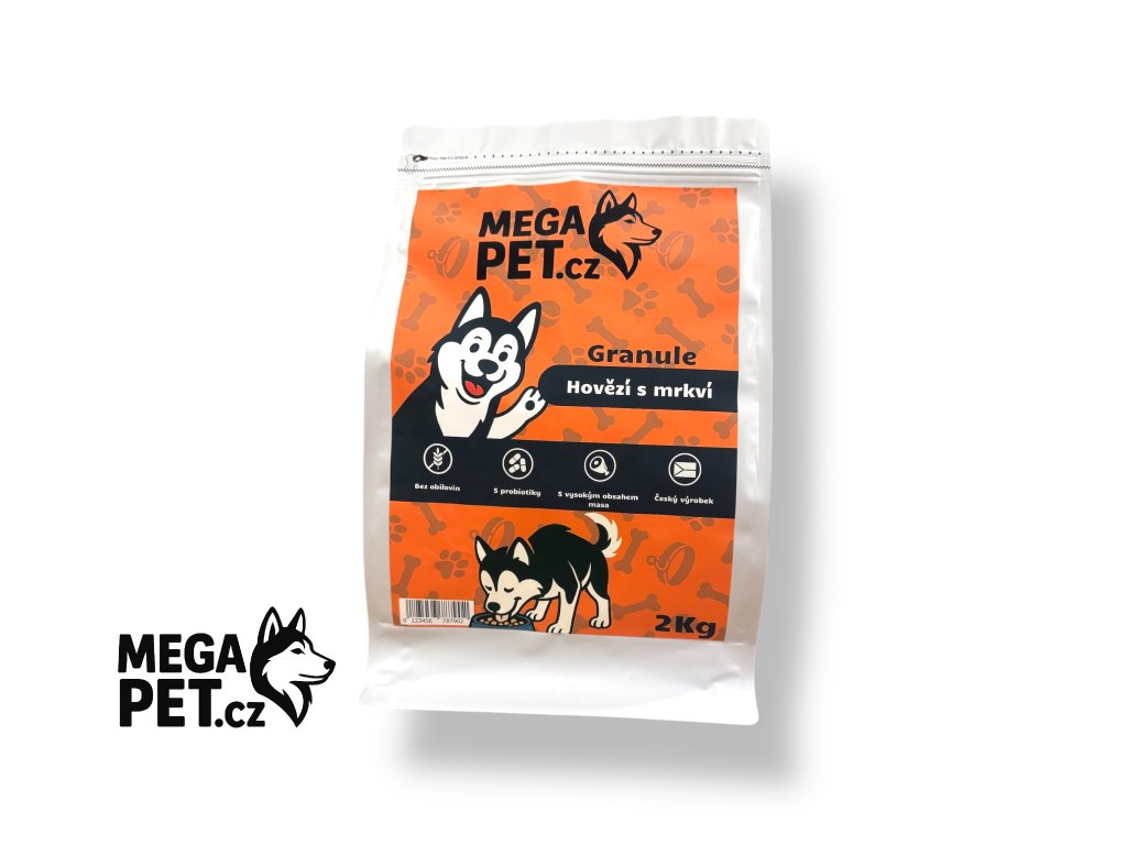 MEGAPET Granule pro psy – Hovězí s mrkví 2 kg