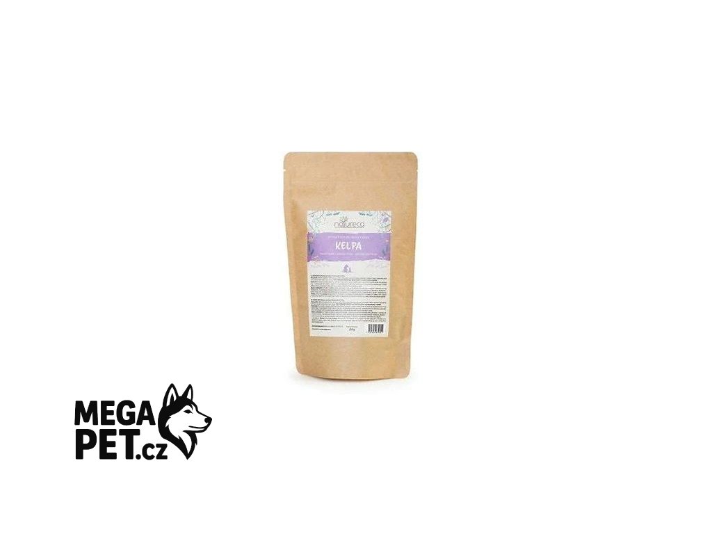 Kelpa je hnědá mořská řasa (chaluha) s vysokým obsahem minerálních látek a jódu. Silná podpora přirozené imunity, antioxidant, podpora trávení a pigmentace kůže i srsti, odstraňuje zubní kámen a pach z tlamy. Je to jedinečný zdroj jódu.