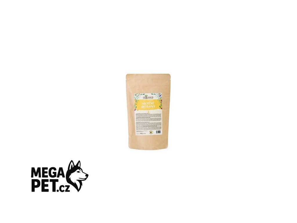 Účel použití: Výživový doplněk krmiva pro psa. Vhodné pro psy všech věkových kategorií všech plemen. Vaječná skořápková blána je bohatým zdrojem kolagenu, glykosaminoglykanu a elastinu - látek nutných pro výživu kloubů. Tyto blány se v moučce projevují jako menší pružné kousky. Skořápky jsou přirozenou přírodní surovinou obdobně, jako kosti. Pes je pro jejich trávení a využití vápníku z nich velmi dobře přizpůsoben. Jemně namleté skořápky z vajec se snadno obalují na syrové maso, lehce se zapracují do mletého masa, konzerv, vlhkých příloh, nebo do olejem, či vývarem namáčených granulí. Neovlivňují chuť ani vůni krmiva. Jeden gram mletých vaječných skořápek obsahuje 350 mg čistého vápníku.