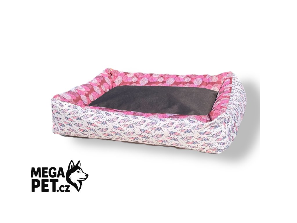 Pohodlný a stylový pelíšek z kolekce MEGAMazli™ pro malé a střední psy. Měkké okraje, hravý růžový design s peříčky a odolné materiály pro každodenní odpočinek.