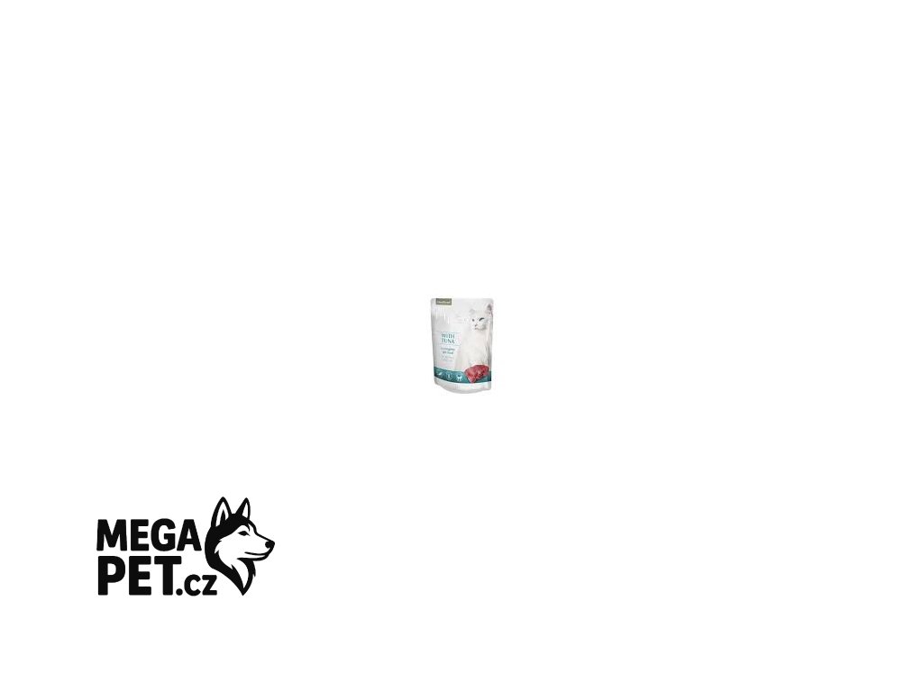 složení: maso a výrobky živočišného původu 45 %, vývar, ryba a vedlejší produkty z ryb (10 % tuňák), deriváty rostlinného původu (hrachový škrob, frukto-oligosacharidy), minerální látky, psyllium semena