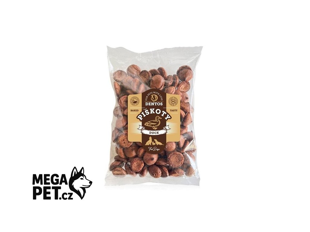 Kachní piškoty pro psy představují výživnou alternativu mezi psími pamlsky, která je založena na kvalitním kachním masu. Kachní maso je zdrojem vysoce stravitelných bílkovin a esenciálních aminokyselin, které jsou nezbytné pro správný růst, regeneraci tkání a funkci imunitního systému psa. Díky nízkému obsahu nasycených tuků je kachní maso příznivé pro zdraví srdce a cév. Navíc obsahuje železo, zinek a vitaminy skupiny B, které podporují celkovou vitalitu a správnou funkci metabolismu. Kachní piškoty jsou tak vhodnou volbou pro psy s alergiemi na běžné zdroje bílkovin, jako je kuřecí nebo hovězí maso, a poskytují vyváženou stravu s důležitými živinami pro zdraví a pohodu psa.