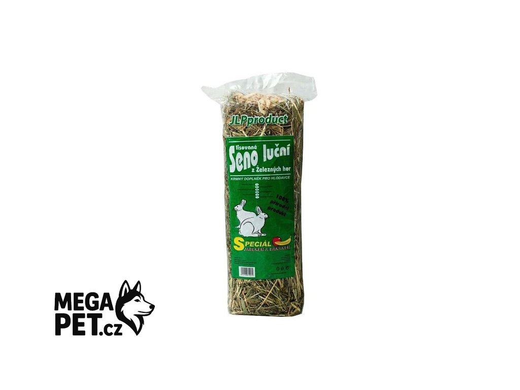 Složení: seno luční, jetel luční, pampeliška, jitrocel kopinatý, jetel plazivý, pcháč různolistý, bojínek luční, a jiné.