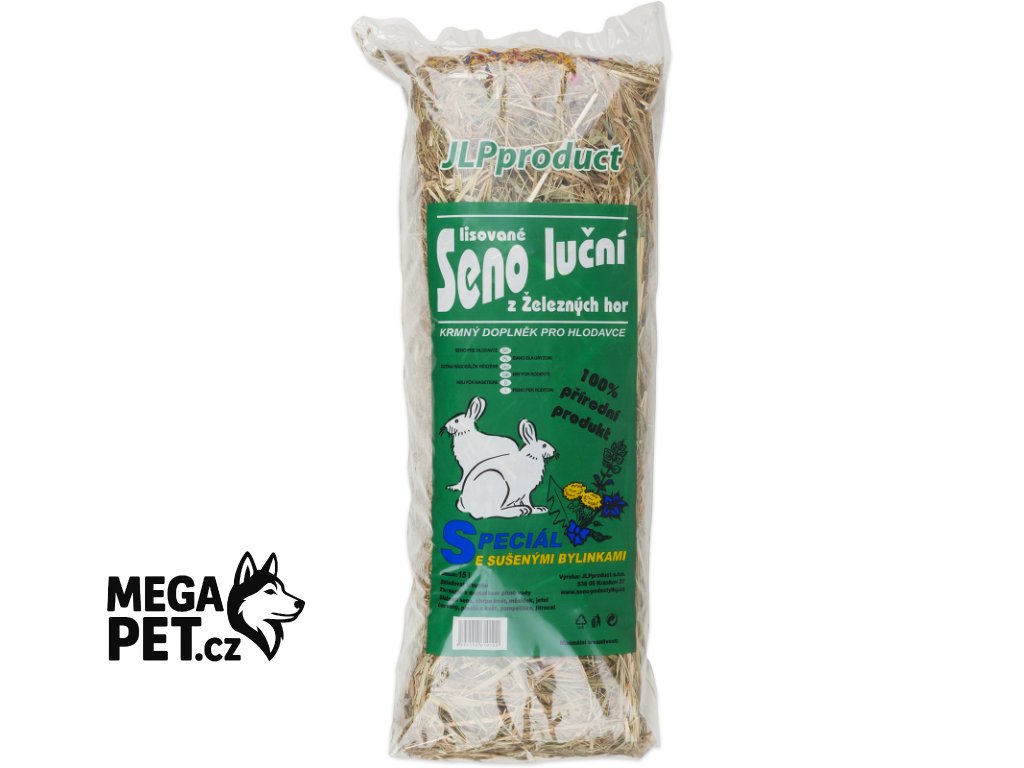 luční seno, jetel luční, bojínek luční, pcháč různolistý a jiné.