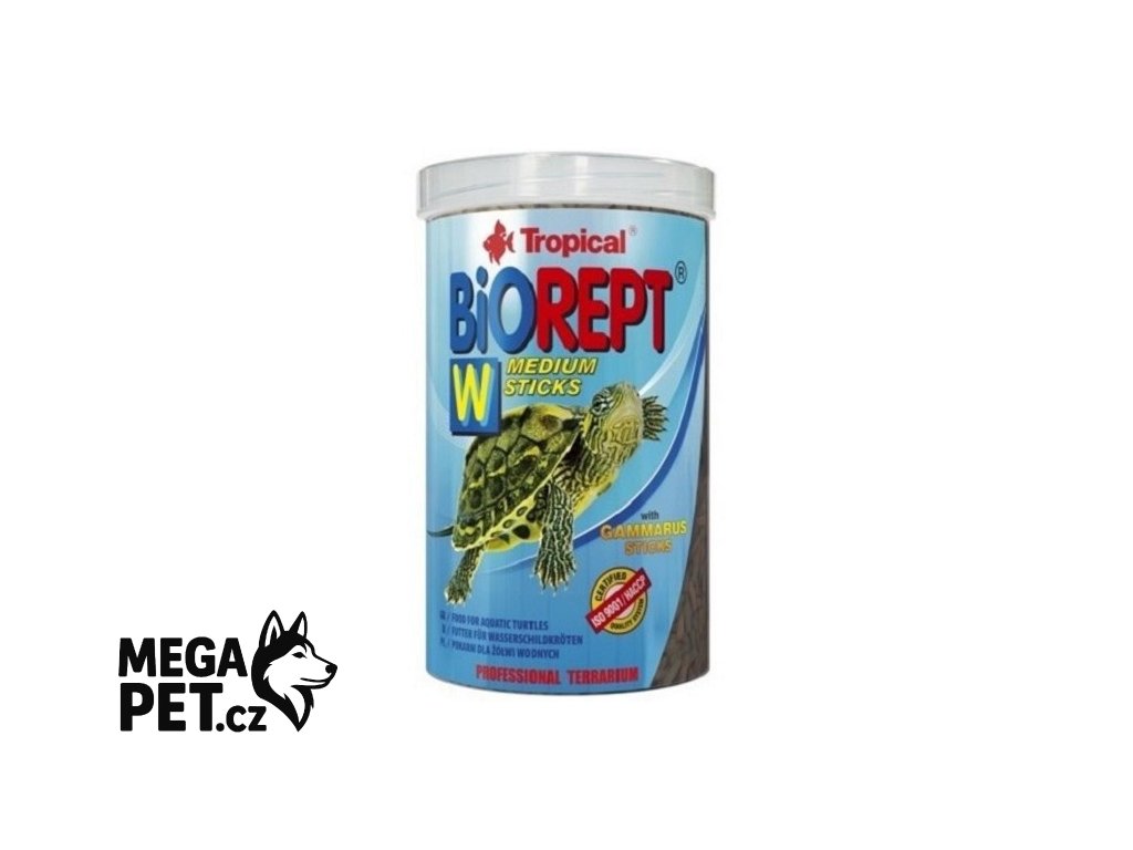 Speciálně zvolená výživných složek zajišťuje požadavky želv na výživu. Výborná chuť tyčinek způsobuje, že je zvířata mají velmi rády. Vhodně zvolena kombinace vitamínů a mikročástic zaručuje správný vývoj kosti a krunýře želv, chrání proti deformacím a dalším závažným zdravotním problémům. Želvy, které se pravidelně krmí tyčinkami Biorept W se rovnoměrně vyvíjejí a mají výbornou kondici. Pro vodní a bahenní želvy doporučujeme také další krmiva značky Tropical – Reptotabin a Gammarus.