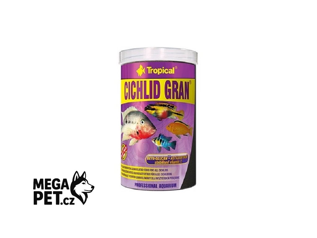 Základní, mnohosložkové krmivo, zvýrazňující zabarvení ryb ve formě zvolna klesajícího granulátu. Cichlid Gran je určené ke každodennímu krmení všežravých cichlid, včetně mnohých druhů cichlid z jezera Malawi.