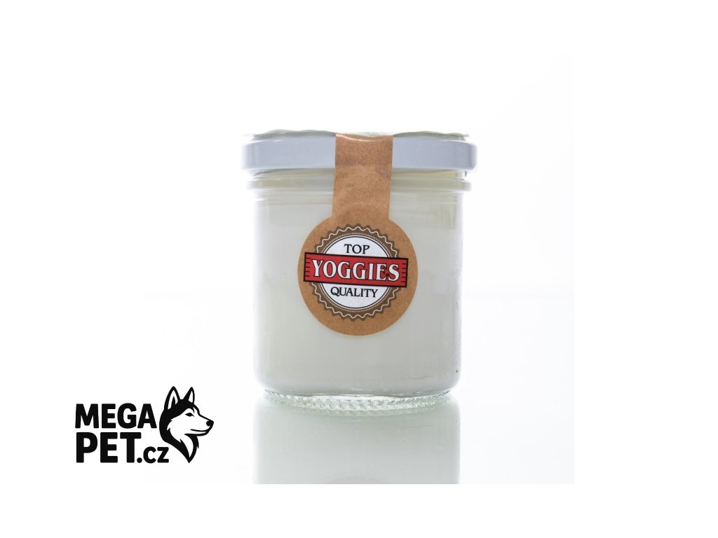 Probiotická bomba v každé lžičce, po které se bude každý chlupáč olizovat až za ušima. To je náš jogurt. Jako jediný na trhu obsahuje živé laktobacily, která přinášejí veškeré benefity pro zdravé zažívání a neprůstřelnou imunitu. Yoggies jogurt je naprosto přírodní doplněk potravy a pamlsek v jednom. Je to také produkt, který zachránil zažívání Roxyho – psa, díky kterému firma Yoggies vznikla. V každé lžičce obsahuje miliardy prospěšných bakterií, které podporují zdravý střevní mikrobiom, a tím pomáhají zlepšovat imunitu, kvalitu srsti, energii, ale třeba i náladu vašeho čtyřnohého parťáka. Navíc v kvalitě těch nejlepších lidských jogurtů. Až 80 % imunitní aktivity probíhá ve střevech. To je slušný důvod udržovat zdravý mikrobiom. Probiotika mají ale spoustu dalších benefitů, jako například: Jogurt je zejména skvělý po léčbě antibiotiky. Ty totiž dají mikrobiomu vždy zabrat. Většina průjmových a zažívacích potíží začíná u nevyvážené mikrobioty ve střevě. Díky speciální kombinaci probiotických kultur jogurt pomáhá předcházet a zastavovat tyto potíže. Při pravidelném podávání zároveň „hodné“ bakterie z jogurtu dokáží postupně vytlačit „špatné“ bakterie, které způsobují různé zažívací problémy (např. Lactobacillus acidophilus). Nejrůznější žvýkací hračky nebo kosti sice dokáží mechanicky zuby vyčistit, neřeší ale častou příčinu zápachu – nevyváženou mikroflóru v ústní dutině. Podle studie Tsurumi Univerzity v Japonsku zmírňují laktobacily v jogurtu zápach z tlamy, takže vašemu společnému mazlení už nemusí nic bránit. Chemické konzervanty či dochucovadla v našem jogurtu nemají co dělat. Zato se však můžete spolehnout na čistě přírodní složení pouze se dvěma ingrediencemi – směsí kvalitního ovčího a kravského mléka a s probiotickými kulturami. Kravské mléko pochází z farmy, kde mají geneticky modifikované suroviny i růstové hormony přísný zákaz. Ovčí mléko pak odebíráme z Nového Zélandu, na kterém se ovce živí vybranými bylinkami, což přispívá menší srážlivosti mléka. Jogurt pak vyrábíme 100% ručně na farmě na Vysočině. Tyto přístupy se odráží v kvalitě naší delikatesy, a vy tak získáváte jistotu, že váš parťák dostává skutečně to nejlepší. Mimo obohacený mikrobiom váš parťák z jogurtu získá spoustu dalších mikroživin: Psi ani kočky neumí efektivně trávit laktózu, proto jsme to udělali za ně. Díky speciálnímu postupu Yoggies jogurt žádnou neobsahuje (0,01 %). Díky tomu je zároveň poměrně sladký, a to bez použití jakýchkoliv sladidel. Vyzkoušejte sami :)Probiotická bomba pro podporu mikrobiomu